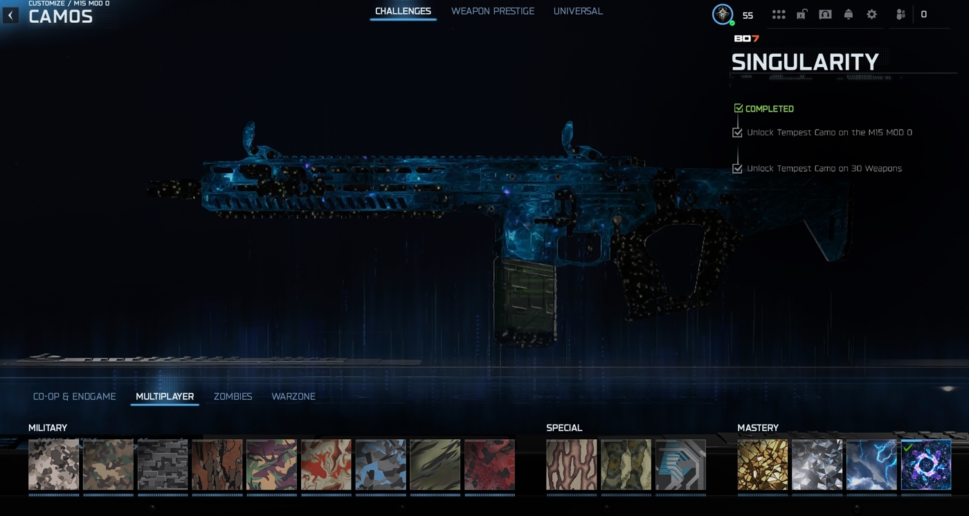 • Singularity Camo on 30 Weapons